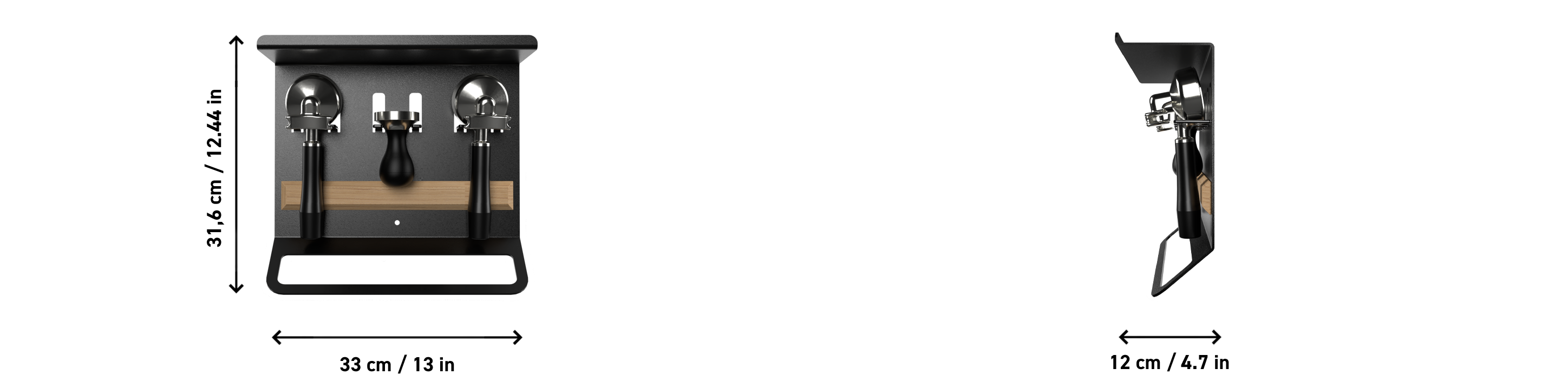 El estante de madera de roble aceitado no sólo es visualmente atractivo, sino que también puede colocarse y retirarse libremente mediante imanes integrados y sirve como espaciador perfecto para su portafiltro. Como el estante es de acero, también es posible acoplarle accesorios magnéticos, como un anillo dosificador.