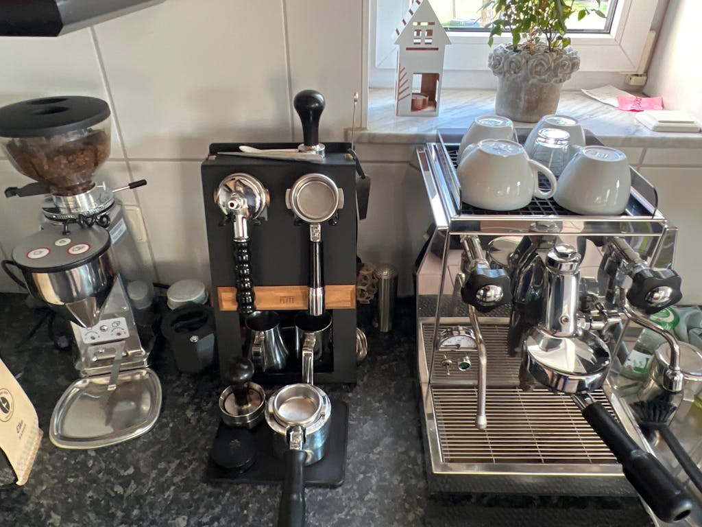 El estante FLATE® Barista es adecuado para todos los modelos estándar de portafiltros y tamper, como E61, DeLonghi, GAGGIA, SAGE & BREVILLE, BEZZERA, ROCKET, ECM, ELEKTRA, MARZOCCO, LELIT, PROFITEC, QUICKMILL, RANCILIO y muchos más.