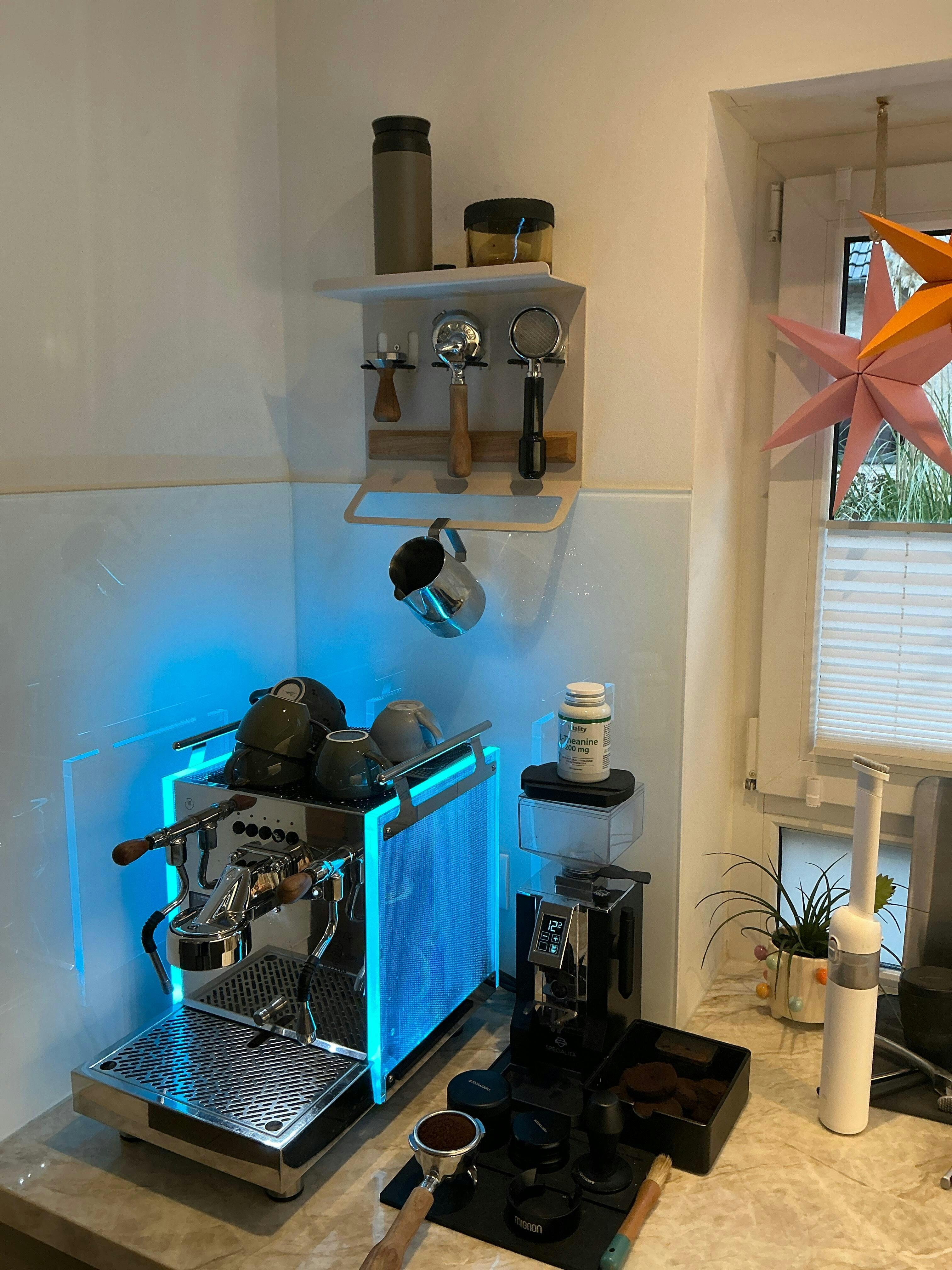 Découvrez le porte-serviettes FLATE® : votre étagère murale pour serviettes barista, pots à lait et accessoires pour café. C'est bien plus qu'une simple étagère de cuisine ordinaire. C'est le complément parfait à votre étagère barista et une aide pratique qui brille également comme meuble autonome. Qu'elle soit placée à côté de votre machine porte-filtre ou comme organisateur de cuisine autonome, l' étagère murale vous offre encore plus d'espace pour vos précieux accessoires de barista. Avec une étagère spéciale pour votre pot à lait, votre balance ou votre pilon, le support mural garantit que vous avez toujours à portée de main tout ce dont vous avez besoin pour un café parfait.