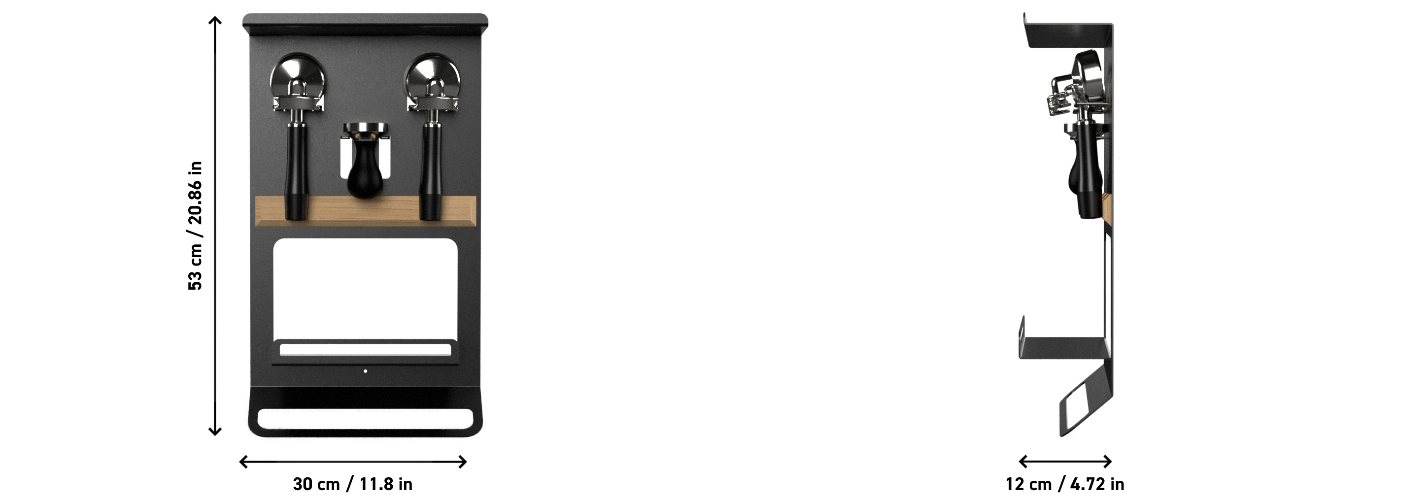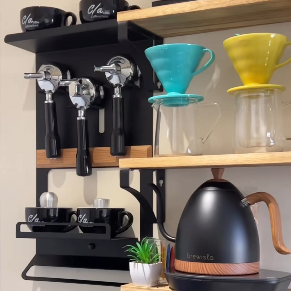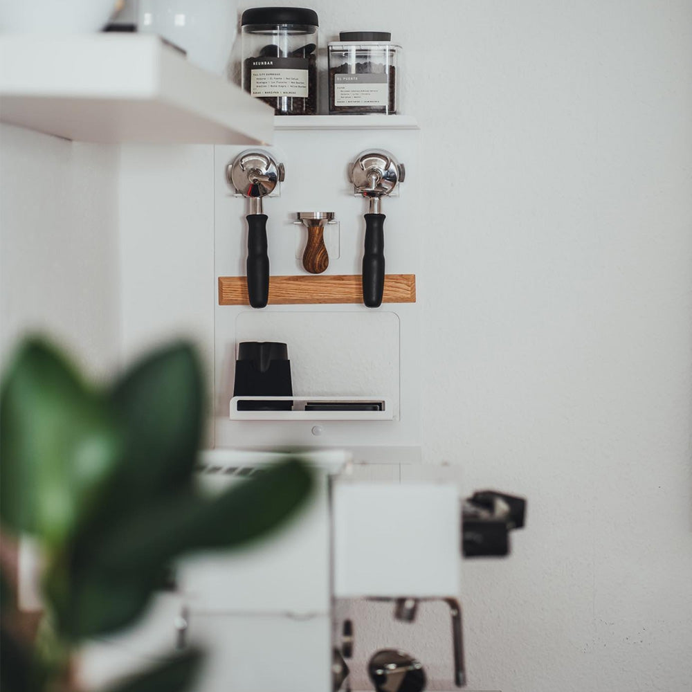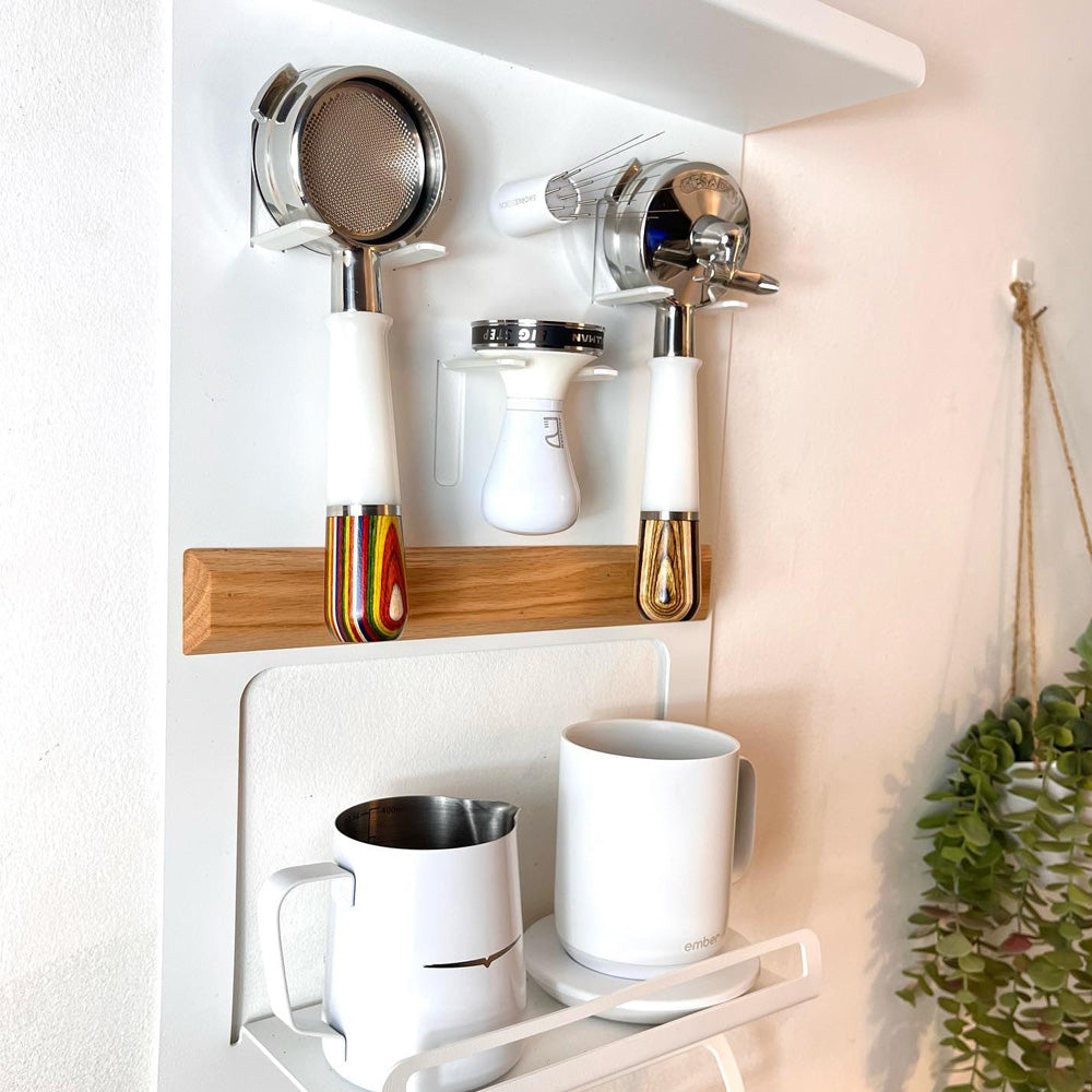 Mensola barista per portafiltri, tampers e accessori da caffè